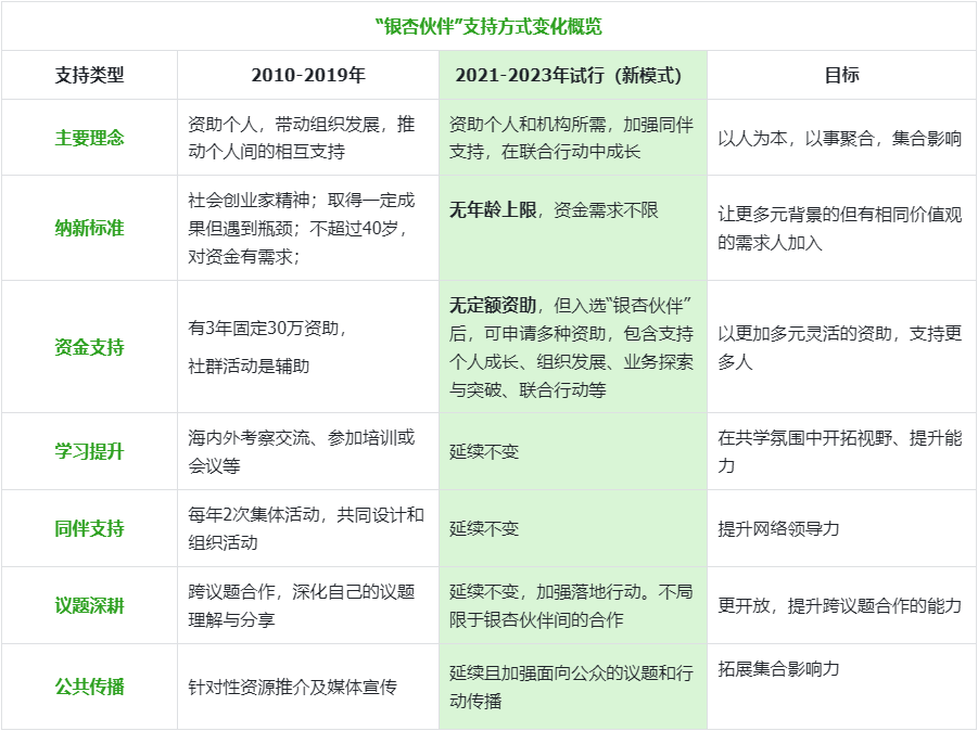 在银杏的社群里,我们年年推陈出新,无论是在合作基金的机制探讨上,还是伴委会的职能行使上,不同伙伴的担当与参与,都让我们有了不断追求向上的力量。