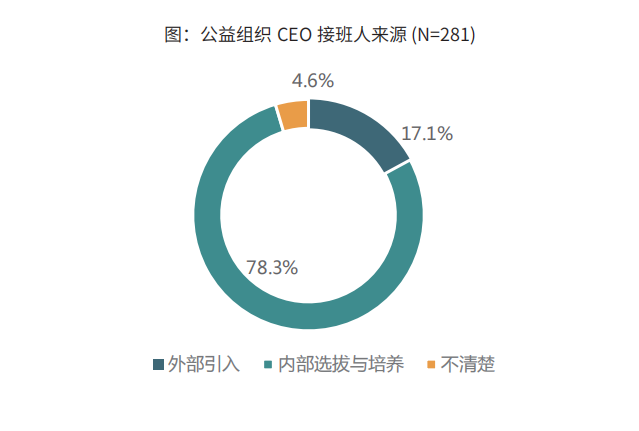 4.公益组织CEO接班人的主要来源为机构内部选拔与培养